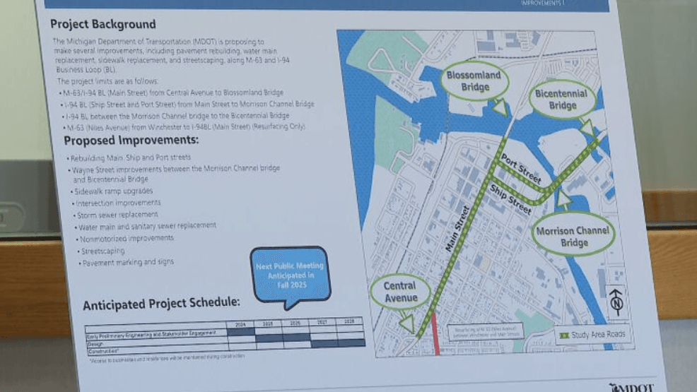 In collaboration with the City of St. Joseph, MDOT is set to undertake significant renovations along Main Street, which is referred to as M-63, and sections of the I-94 Business Loop.